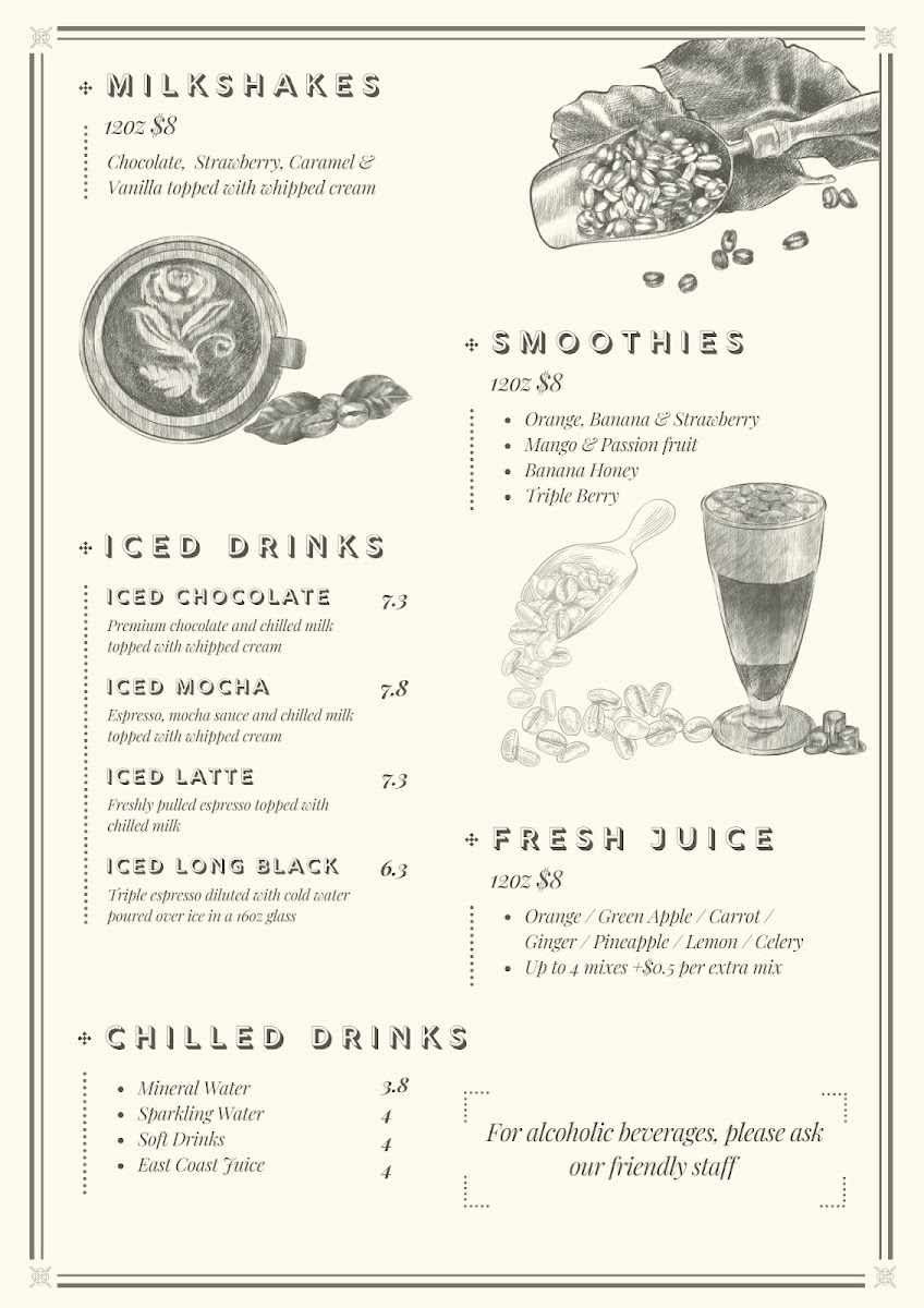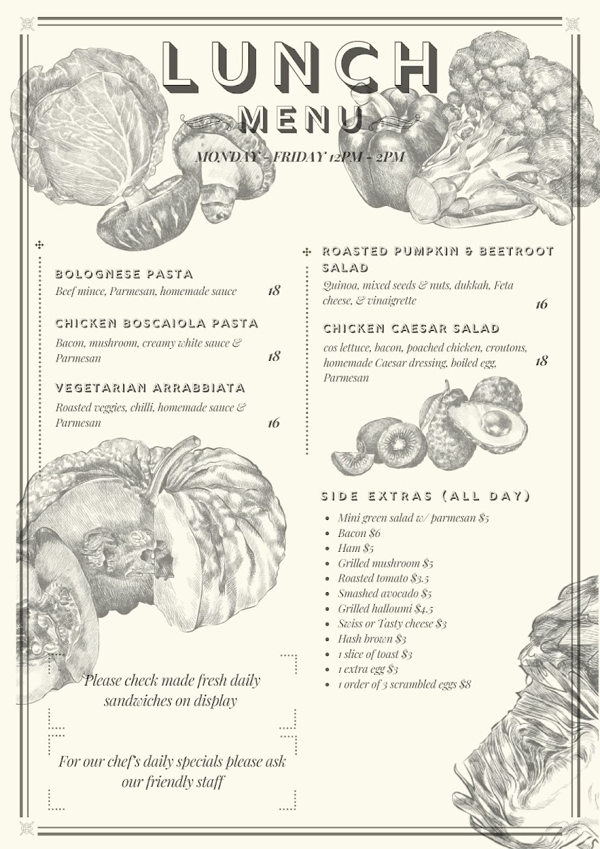 As lunch approaches, the offerings transition seamlessly with hearty dishes like the Chicken Boscaiola Pasta, tossed with crispy bacon, mushrooms, and creamy white sauce for only A$18, or enjoy a vibrant Roasted Pumpkin & Beetroot Salad, tossed with quinoa and topped with feta for a refreshing experience at A$16. Each dish is crafted with care and creativity, ensuring that your taste buds are treated to a delightful adventure.